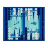 Add a dash of preppy panache to your next game night with our Basketweave Backgammon Set. Crafted in couture lacquer, the high-gloss box features our modern take on a traditional basket weave pattern. It opens to reveal a striking interior of cool blues accented with white and lime. After vanquishing your foes, fold it closed for a chic cocktail table accent.